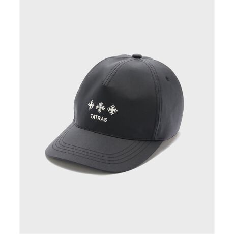 フロントには、同色の立体的なクロスロゴ付きブランドロゴワッペンを圧着でプリントした5パネルキャップ。