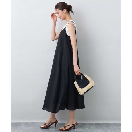 大人カジュアル気分にぴったりな、素材の可愛さを活かしシンプルに仕上げたキャミワンピース。肩紐は調節カン付きなので、長さも自分好みに合わせられるのも嬉しい。