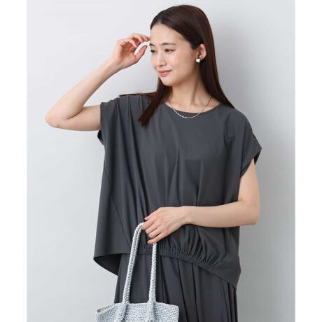 きちんと感のある見た目にカットソーの着心地が嬉しいトップスはオンからオフまで幅広く活躍してくれます。同素材のスカートとセットアップでワンピース見えの着こなしもおすすめ。速乾機能付きなので、急な天候の変化はもちろん、水辺などのレジャーシーンにも安心です。