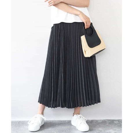 動くたびに揺れる細かなプリーツが大人上品な印象のスカート。分量感があるので動きに合わせて揺れ、落ち着いた印象の素材と相まって女性らしく着こなせます。