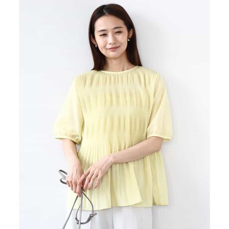 【5分袖/洗える】マジョリカプリーツシアーブラウス