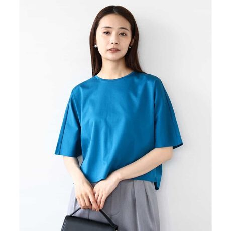 きれいめな表面感と適度な肉感が高見えするシルケットポンチの素材を使用。コットン100ですが上品なツヤがあり、クリアな発色も魅力的。接触冷感機能付き。