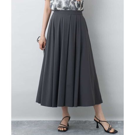 贅沢な分量感のあるフレアスカート。イレギュラーなタックデザインで動きがあり、程よくカジュアルな印象に。一枚で透けにくく、イージーケアな扱いやすさも魅力的。