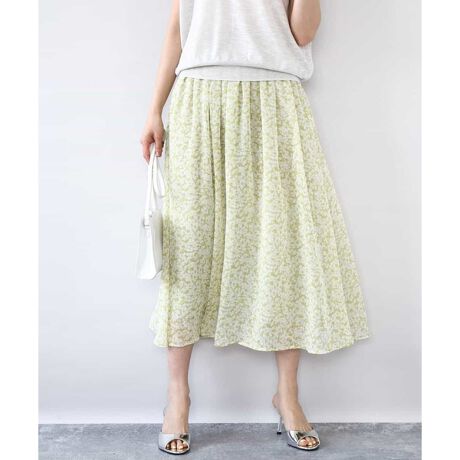 【こなれSETUP/洗える】小花柄シフォンスカート