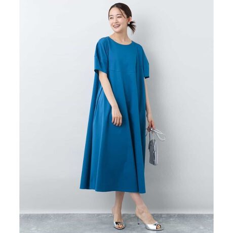 【接触冷感/洗える】ランタンスリーブ切替えワンピース