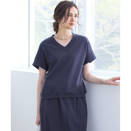 襟ぐりを後ろに抜いて着こなせるVネックが女性らしいプルオーバーです。目の詰まった薄手の裏毛なのでシルエットが出しやすく、体のラインを拾わないデザイン性のある1枚。後ろが裾に向けて膨らむコクーンシルエットなので、ヒップに少し乗るシルエットでお洒落なニュアンスをプラス。同素材のスカートとセットで合わせても楽しめるデザインです。カラーは、カジュアルムードがお洒落なライトグレー(#003)、落ち着いたトーンのベージュ(#033)、合わせやすいダルブルー(#074)の3色展開です。