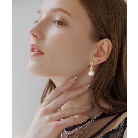 上品な艶めきを放つ一粒パールが揺れる、クラシカルでモダンなピアス