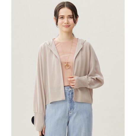 フェミニンなデザインのジップアップパーカー■デザインゆったりとしたドルマンスリーブがフェミニンなジップアップパーカーです。袖口にはサムホールが付いており、アームカバーとしてもお使いいただけます。デザイン性と機能性が両立した万能なアイテムです。ボクシーなシルエットでコンパクトな丈感なので、スカートやワイドパンツ、ワンピースなど様々なボトムスとコーディネートしていただけます。■素材再生繊維セルロースから作られた、シャリみとドライタッチな風合いが特徴の素材です。さらりとしており肌離れが良く、接触冷感、UVケアといった機能性もある夏にもぴったりの素材です。■同素材アイテムカーディガン(KKWRGA0035)