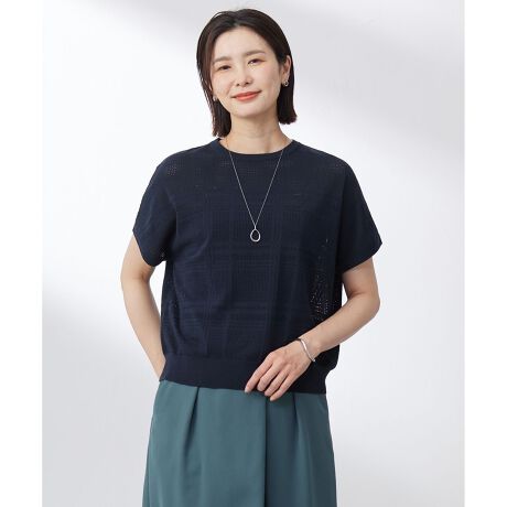 ■デザインメッシュ編みを施した、見た目も涼しげなニット。軽やかな透け感が大人の抜け感を演出し、夏の装いに表情を添えてくれます。気になる二の腕をカバーする袖丈で、安心感のある着心地も魅力です。ほんのりと存在感を放つチェック柄は、トレンドを押さえつつ、スタイリングに華やかさをプラスします。風通しの良い程よくゆとりのあるシルエットで、さらっと快適な着心地を実現。1枚でコーディネートが決まり、パンツにもスカートにも合わせやすい万能トップスは、夏のワードローブに加えたい1着です。カラーは、柔らかく親しみやすいライトベージュ(#303)、女性らしさを引き立てるピンク(#312)、パッと目を惹く爽やかさのアクアグリーン(#361)、オンオフ兼用で大人なネイビー(#375)の4色で展開します。