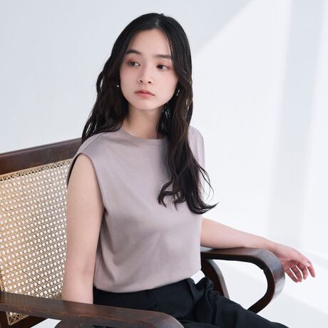 肩にタックを入れることで、美しいドレープ感と立体的なシルエットを実現しさりげなく二の腕をカバーしてくれます。ほどよいゆとり感で、ボトムスにインしてもアウトしても美しく決まる絶妙な丈感です。