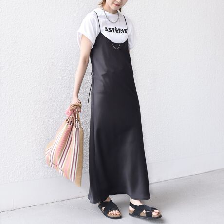 体のラインをひろいにくいシルエットにしている為、暑い夏でも涼しく1枚でさらっと着れるワンピース。