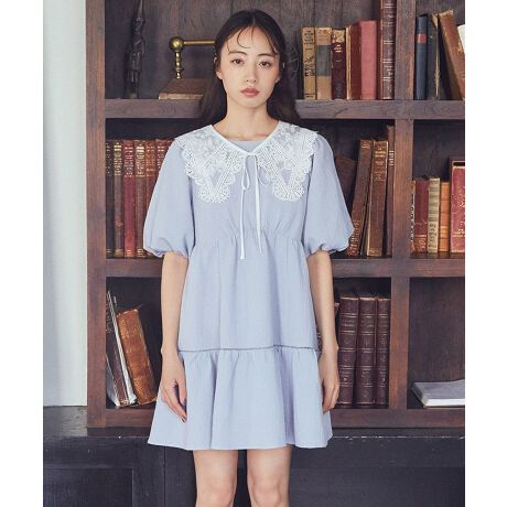 表情のある素材で上品に仕立てたミニ丈ワンピース。ティアードボディにふんわりとしたパフスリーブを合わせ、一枚で華やかで女性らしい着こなしを演出します。バックネックのリボンが抜け感のあるアクセント。一枚着はもちろん、パンツとレイヤードしたスタイルもおすすめです。透け感[ややあり]