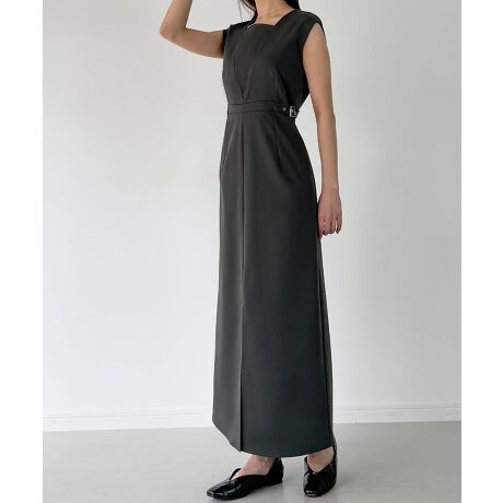 Vネックノースリーブウエスト調整可能ワンピース(薄手、裏地なし)