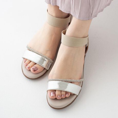 夏の日差しにきらめくグリッター素材で足元をさりげなく華やかに見せてくれます。