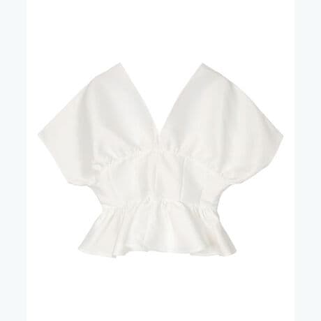 ◆DETAIL前後深めのVネック明きで女性らしい上品な肌見せが叶います。ウエストはコルセット風のデザインでウエストシェイプしているのでスタイルアップができます。裾はフリルが付いておりフェミニンな印象に仕上げました。1枚で華やかな印象を与える1枚に。◆FABRIC上品な光沢にハリ感のある素材※肌触りが気になる方は中にインナーの着用をお勧めします。[型番:BFXN2132]