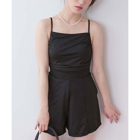 ・バックオープンデザインで抜け感溢れるロンパース水着。