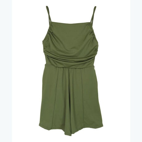 ・バックオープンデザインで抜け感溢れるロンパース水着。