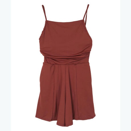 ・バックオープンデザインで抜け感溢れるロンパース水着。