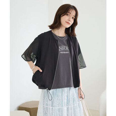 ライトな着心地が嬉しいシアーZIPベスト。裾ドロストを絞って旬テイストなバルーンシルエットにアレンジした着こなしもお楽しみいただけます。程よくゆとりを持たせたサイジングも魅力的。いつものコーディネートにプラスオンするだけで洒落感のあるレイヤードスタイルがキマるおすすめのアイテムです。透け感[ややあり]
