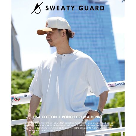 50/-ポンチ 汗ジミ防止 ヘンリーネックT