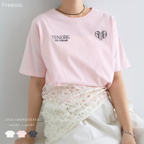 ロゴ エンブロイダリー ショート丈 半袖 Tシャツ Freesia フリージア