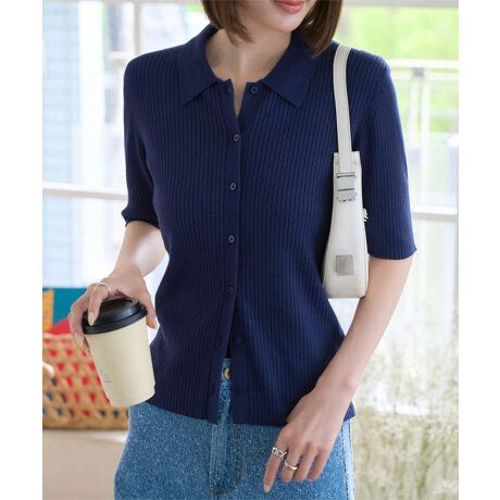 デイリーに使いやすい、程よくラフな雰囲気が魅力の5分袖ポロニット。
