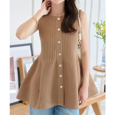 即完売した【N1155】ペプラムVネックカーディガンから、丸首ノースリVer.が新登場。