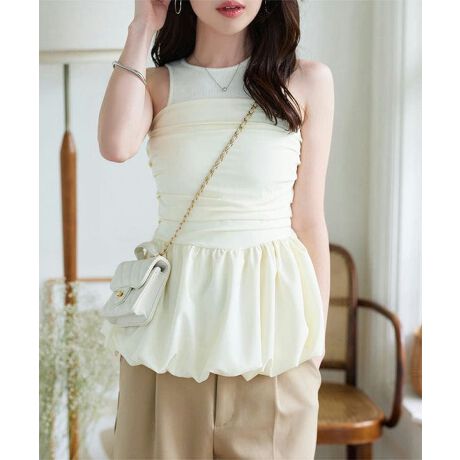 バルーンペプラムのトレンドシルエットで体型カバーを叶えつつ、華やかさを演出してくれます。