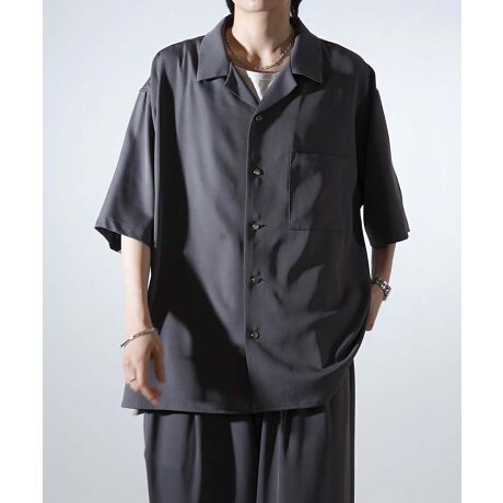Confirm ビッグシルエット メタルボタン ドレープとろみ オープンカラー半袖シャツ