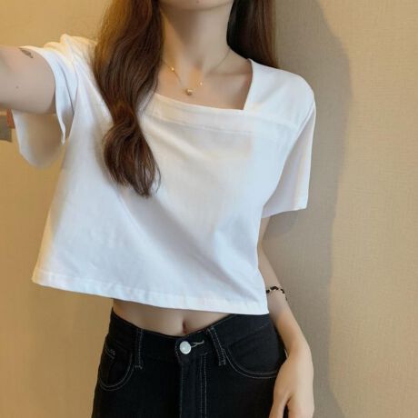 スタイリングがスッキリまとまるショート丈半袖Tシャツ