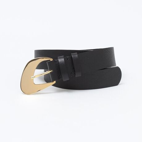 曲線を描くメタルバックルで繊細なエッジを効かせたベルト。