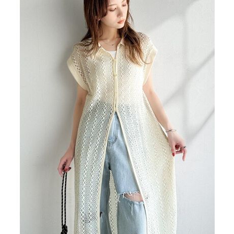 トレンド感たっぷりの魅力を纏う。襟付きクロシェ風レースジレ