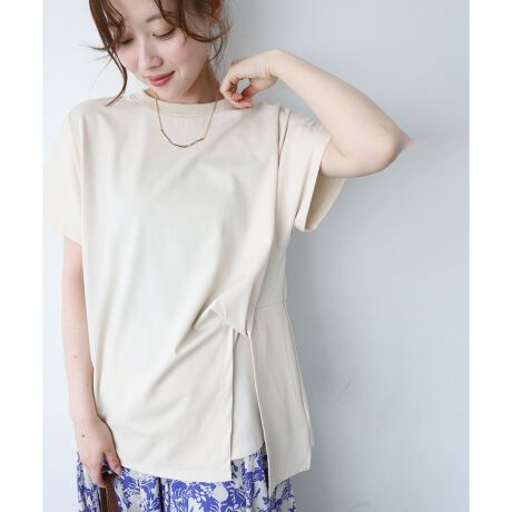 [型番:3553019217]《WEB限定アイテム》アシンメトリーのツイストデザインがポイントのカットソー落ち感のあるライトな素材感は身体のラインを拾いにくくさらっと気楽に着ていただけます。●ポイント袖は肘あたりまであり気になる二の腕もすっきりみえ●おすすめコーデ丈はヒップにかかるのでパンツでもスカートINでも〇夏にも一枚でサマになる優秀トップスです。