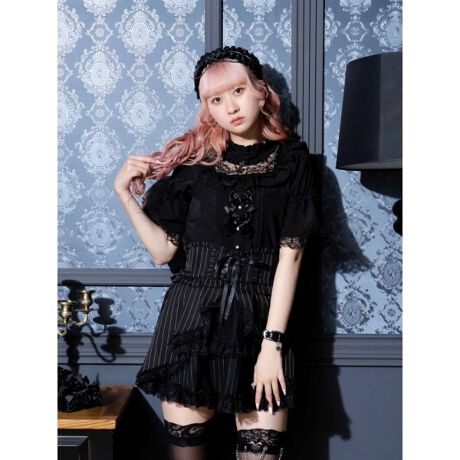 フリルやレースを施したハイネックのデザインで、ゴシック風の着こなしを楽しむことができます。
