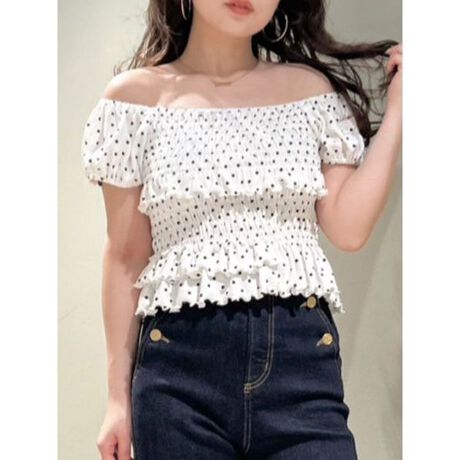 <b>【シャーリングが魅せる華やかコンパクトトップス】</b>