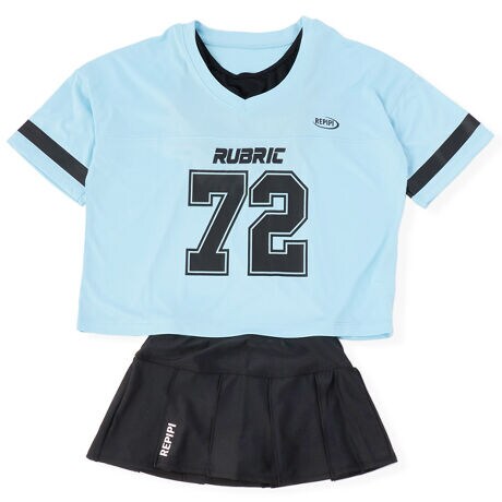[型番:125641]洋服感覚で着用できるTシャツの3点セット水着です。スポーティーな雰囲気のオーバーサイズTシャツにガーリーなプリーツスカートを合わせた甘辛ミックススタイルです。