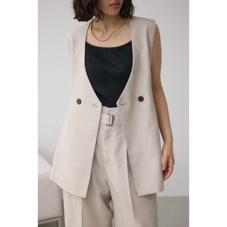 ■イージーケアリネンライクジレ■ポイントサイドベルトがポイントのリネンライク素材を使用したジレ。■ディティールノーカラーデザインなのですっきりとした印象に。サイドベルトデザインがウエストを細く見せてくれます。選べる着丈設定になっています。Sサイズがミディ丈、Mサイズがロング丈になります。■スタイリング同素材の250ISB31-504E イージーケアリネンライクベルトワイドパンツと合わせてセットアップとして着用可能。羽織るだけで縦のラインを強調し、スタイルアップ効果が期待出来ます。キレイめなオフィスコーディネートから、カジュアルな休日のお出掛けまでシーンを選ばずデイリー使いにピッタリなアイテム。■生地ポリエステル100%で洗濯後しわになりづらいイージーケア素材を使用。透け感:なし裏 地:あり伸縮性:なし光沢感:なし[注意事項]※画像の商品はサンプルです。実際の商品と仕様、加工が若干異なる場合があります。※画像の商品は光の照射や角度、お使いのモニター環境により、実物と色味が異なる場合がございます。※着用、お取り扱いの際は、アテンションタグをご確認ください。
