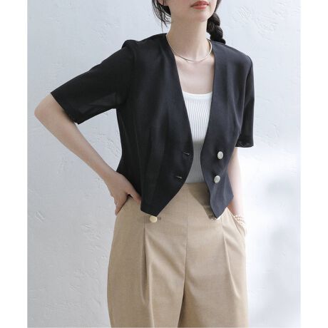 トレンド感溢れるクロップド丈のハーフスリーブジャケット。