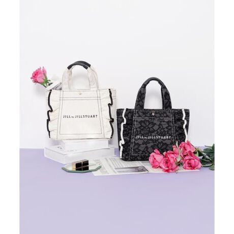 JILL by JILL STUART 定番のフリルトートからレース素材が登場!定番のキャンバスライクな素材にレース生地を貼り合わせて大人かわいい印象に。同系色でまとめたデザインが上品さを叶えます。内側は荷物を整理しやすい小物ポケット付き。背面とハンドル部分には合皮素材を合わせて、品の良さと実用性も兼ね備えました。季節を問わず幅広いシーンにお使いいただけます。※撮影時照明の関係により、色味が違って見える場合がございます。またパソコン・スマートフォンなどの環境により、若干製品と画像のカラーが異なる場合もございます。予めご了承ください。商品の色味は、商品単品画像をご参照下さい。※商品画像はサンプルのため、色味やサイズ等の仕様に変更がある場合がございますので、予めご了承ください。