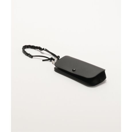 リングカラビナにセットした、編み込みディテールのストラップが、程よいアクセント。