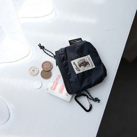 内部に仕切りがあり、小銭・カード・リップなど細かなアイテムがかさばらず分けて整理できるのがうれしいポーチカラビナ付きでベルトループやバッグに外付け可能