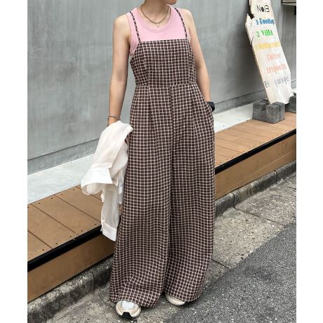 バックリボンチェックロンパース