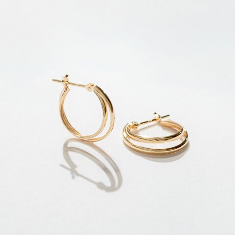 [型番:43-7897]人気のフープピアスに、2連デザインが仲間入りしました♪程よいボリュームのある開きの大きいタイプで、お出かけやリモートワークにも映えるテイスト、何度も鏡を見たくなる上品さ。ベースはフープタイプなので、使いやすく、毎日活躍してくれること間違いなし!ユニセックスデザインなので、男女ともにお使いいただけます。