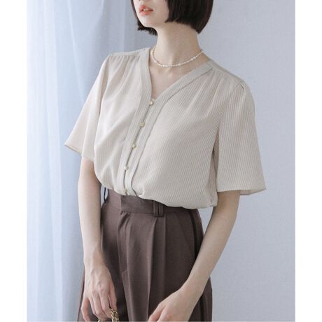 ほんのり艶のあるシアー素材、細かなストライプ柄で表情のあるブラウス。
