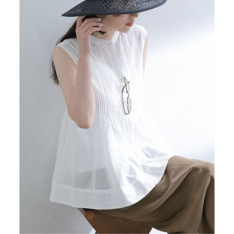 フロントのピンタックがフェミニンで華やかな1枚。