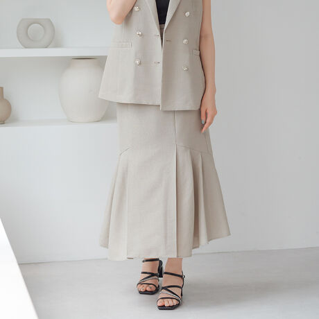 麻調メッシュ素材で爽やかな印象を演出するマーメイドスカート。サイドにタックを加えた裾フレアなマーメイドラインがエレガントなデザイン。共布ベルトのウエストマークも上品なアクセントをプラスします。カジュアルからキレイめにと、オンオフ問わず幅広いスタイリングに活躍してくれるアイテムです。■fabric透け感[無し]裏地[無し]伸縮性[無し]生地の厚さ[普通]ウエストゴム[有り]ファスナー[有り]ポケット[有り]