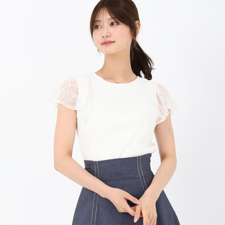 ふわっとしたレースのフリル袖がフェミニンな表情を演出するトップス。テレコリブのカットソーで肌触りも良く、快適に着用することができます。コーディネートに上品な華やかさをプラスする、大人可愛いアイテムです。■fabric透け感[無し]裏地[無し]伸縮性[有り]生地の厚さ[普通]