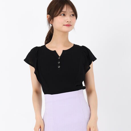ふわりと揺れるフレア袖が愛らしい表情をプラスするニット。ボタンをあしらったキーネックのスリットも軽やかな抜け感のある印象に。伸縮性のあるリブニットで動きやすく快適に着用することができます。カジュアルな着こなしからガーリーなスタイルにと、幅広く活躍してくれるアイテムです。■fabric透け感[無し]裏地[無し]伸縮性[有り]生地の厚さ[普通]