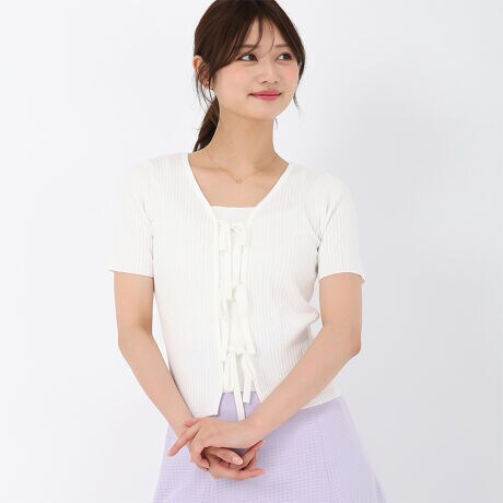 2025春夏新作 2wayリボン半袖リブニット