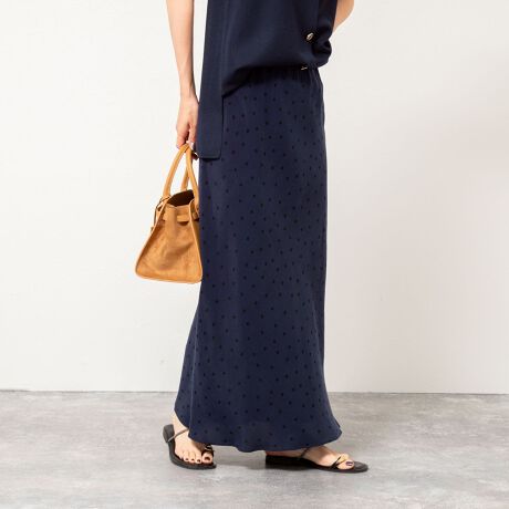 ・微光沢のある上品な生地にドットプリントが施されたナロースカート